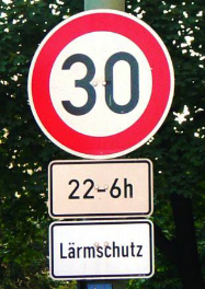 Une partie du réseau principal de Berlin est limité à 30km/h la nuit (de 22h à 6h) pour des raisons de protection contre les nuisances sonores. Selon l’environnement, les mesures effectuées montrent une diminution des niveaux de bruit de 1,2 à 3 dB.