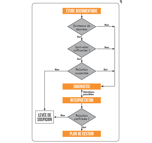 Les aménageurs, concepteurs, gestionnaires, décideurs et particuliers déclarent très souvent se trouver démunis en cas de présomption de pollution des sols et ne pas disposer de connaissances suffisantes pour initier et structurer un chemin de réflexion et de décision face aux situations qu’ils rencontrent. La suspicion d’une pollution des sols engendre un questionnement sur un risque pour la santé humaine et/ou l’environnement.