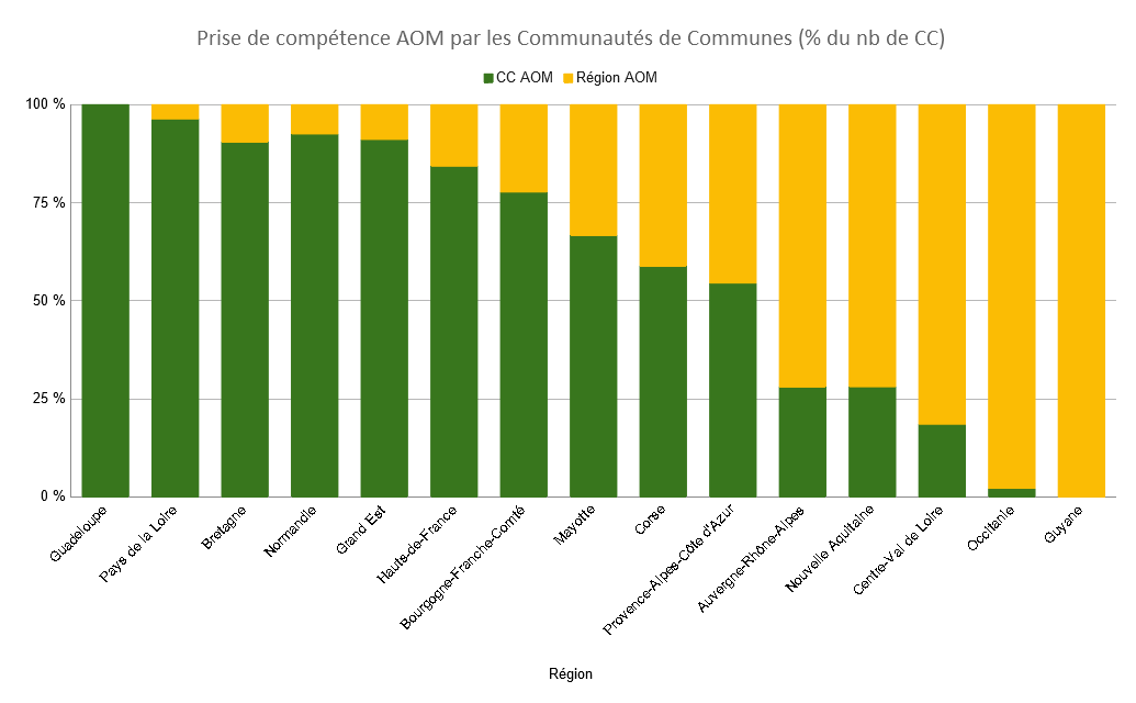 --> La catégorie « CC AOM » de cette carte cumule les CC qui étaient AOM avant 2021 et celles qui ont pris la compétence en 2021.