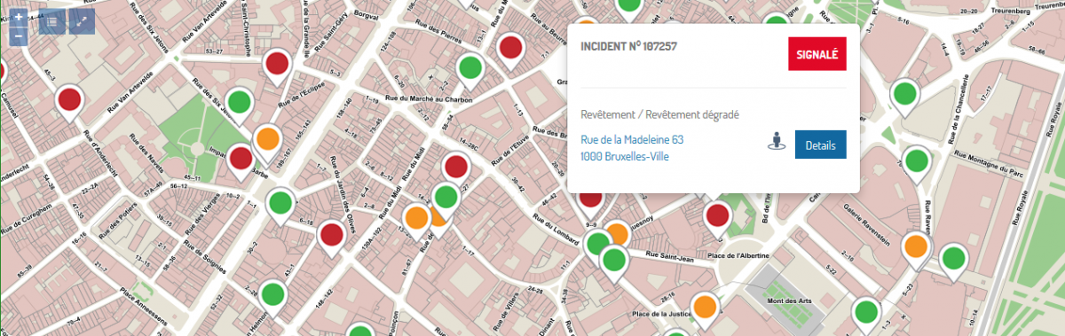 Là aussi la volonté de transparence est forte, et une carte donne accès à tous les signalements, et à leur état de traitement ("signalé", "en traitement", ou "clôturé").
