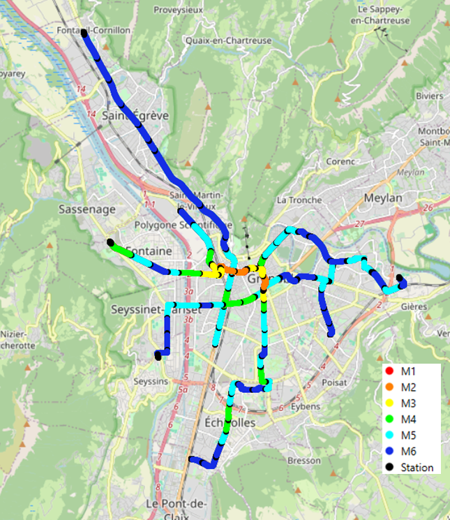 Par ailleurs la réglementation et les normes françaises ne préconisent pas de seuils minimaux d’éclairage des plateformes de tramway. Afin de définir un éclairage minimal à maintenir sur les plateformes de tramway à l’avenir, le SMMAG a commandé une première étude au Cerema en 2023, dont les conclusions ont permis d’établir des seuils d’éclairage associés à des interstations dont la complexité de conduite différait. Dans l’objectif de décliner ces seuils à l’ensemble des interstations du réseau de tramway de l’aire grenobloise, une étude complémentaire a élaboré en 2025 un Schéma Directeur d’Éclairage (SDE) sur l’ensemble de ce réseau.