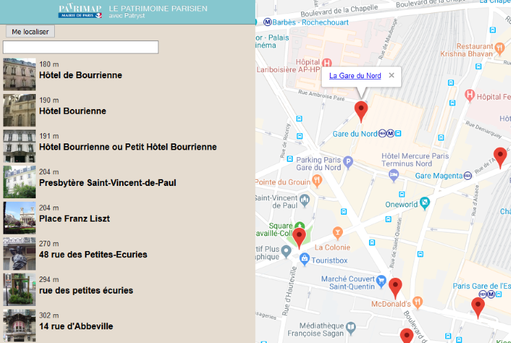 Pour mieux appréhender la ville, des applications aident à la visiter, la connaître, apprendre son histoire, etc. C'est le cas de l'application Patrimap (image ci-dessous) qui donne des informations sur le patrimoine de Paris, via la proposition de balades et même d'un jeu : cumuler des points pour gagner des lots.