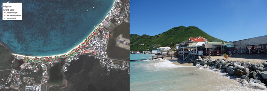 Concernant le bâti : levé du niveau de reconstruction dans les quartiers d’Oyster Pond et Grand-Case à St-Martin et de Gustavia à St-Barthélemy