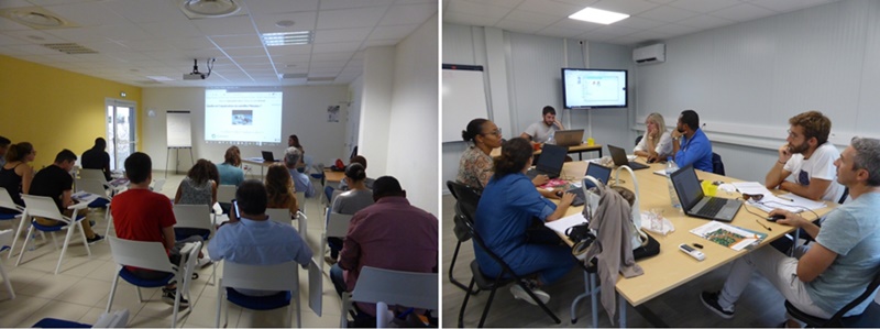 Deux sessions de formations ont été proposées, la première en Guadeloupe auprès de la Direction de l'Environnement, de l'Aménagement et du Logement (DEAL), la Direction de l'Alimentation, de l'Agriculture et de la Forêt (DAAF) et KaruGeo, le portail d'informations géographiques de la Guadeloupe.