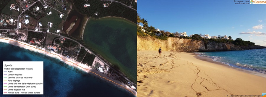 Trait de côte : levé de l'indicateur de limite de jet de rive et de limite de végétation sur le littoral sableux à St-Martin et St-Barthélemy grâce à l'application Rivages