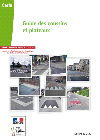 Parallèlement à ce travail, un guide de recommandations sur les coussins et plateaux a été publié par le Certu, puis remis à jour en 2010. La version 2010 a permis de tenir compte des retours de terrain et d’introduire notamment un coefficient de rugosité pour les coussins afin de faire barrage à des produits qui s’avéraient glissants par temps de pluie.