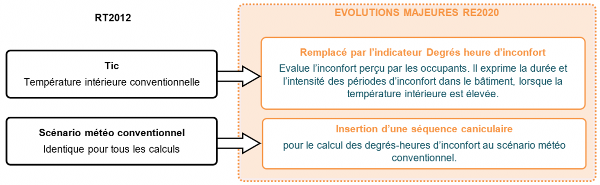 La RE2020 présente une évolution importante sur le thème du confort d’été. La Tic (Température Intérieure Conventionnelle), indicateur réglementaire de la RT2012, est supprimé : les retours d’expérience indiquent que cet indicateur n’est souvent pas assez corrélé avec l’inconfort perçu par les occupants.