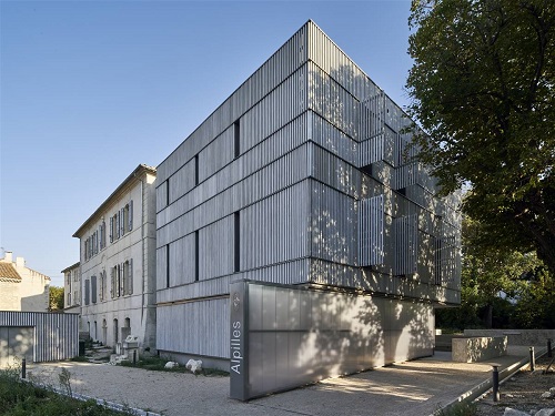 La Maison du Parc naturel des Alpilles dans les Bouches-du-Rhône est située en centre-ville dans une habitation bourgeoise du XVIIIe siècle en pierre calcaire et à valeur patrimoniale, réhabilitée avec ajout d'une extension de style contemporain. Le diagnostic avant travaux a montré un bâtiment sain bien qu'en mauvais état et non isolé.