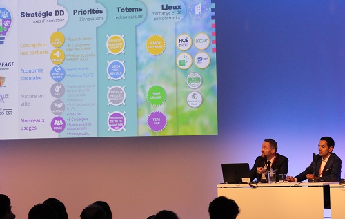La journée a été ouverte par Aude Debreil et Nicolas Gravit, co-présidents du RNA et respectivement Directrice de l’EPA Sénart et Directeur d'Eiffage Aménagement.