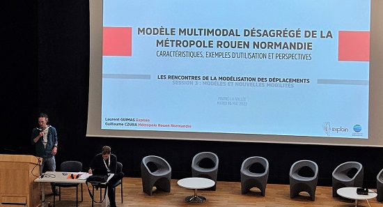 Dans la troisième présentation, Guillaume Czura, chef de projet à la métropole de Rouen et Laurent Guimas, directeur de projet chez Explain ont présenté la méthode de création d’un modèle statique désagrégé sur le périmètre de l’enquête de Rouen et comment celui-ci intègre les P+R et le vélo. La présentation montre tout le défi d’implémenter de nouvelles méthodes de modélisation et en même temps d’intégrer de manière plus précise des nouveaux modes. Chaque élaboration de modèles nécessite des adaptations aux contextes et spécificités locales.