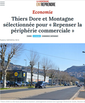 La restructuration de l’entrée de la ville basse de Thiers est porté par la Communauté de communes de Thiers Dore et Montagne, qui a pour ambition de transformer ce secteur commercial en morceau de ville en tenant compte des équilibres commerciaux environnants et en le reliant à la ville haute de Thiers, cœur historique de l’agglomération ;- Le projet de réaménagement de la zone Pariwest est porté par la Communauté d’agglomération de Saint-Quentin-en-Yvelines, qui souhaite anticiper le déclin de cette zone commerciale majeure en renforçant son urbanité par le développement d’une mixité programmatique ;