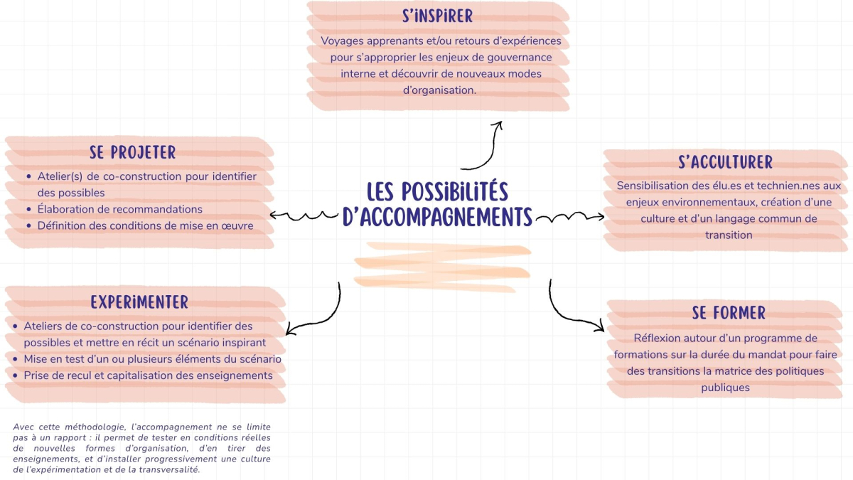 La démarche proposée est partenariale : elle prend en compte la taille de la collectivité, ses enjeux et son calendrier politique.