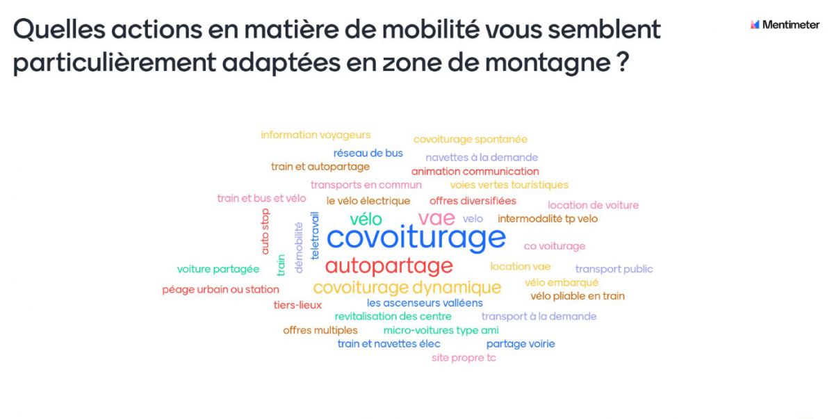 En conclusion du webinaire, les participants ont indiqué les actions et solutions de mobilité leur paraissant les plus adaptées dans les zones de montagnes