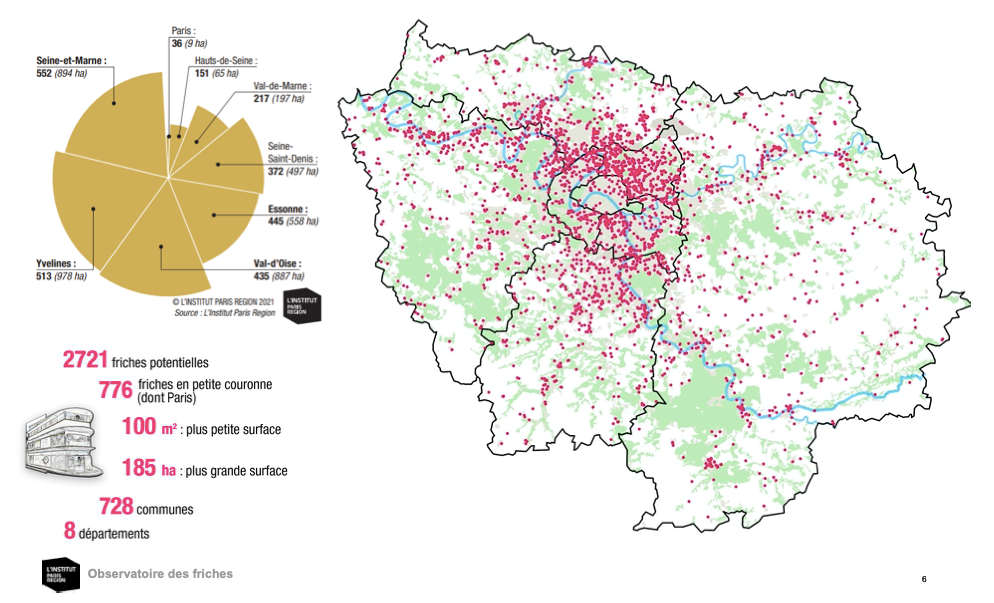 Les friches urbaines sont des terrains qui connaissent une rupture d’activité dans un environnement urbain constitué. Le contexte de rareté foncière et de pression immobilière particulièrement tenduu en Ile-de-France impose une réflexion sur le devenir de ces espaces dans le cadre de la mise en œuvre du Zéro Artificialisation Nette (ZAN).