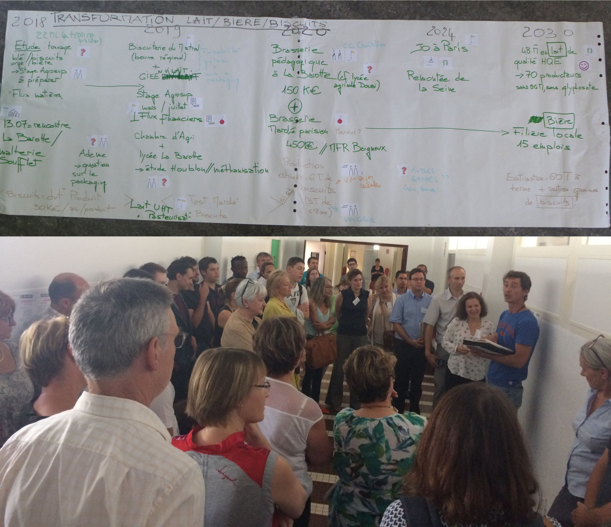 Elaboration d'une vision partagée du territoire en 2050, d'un argumentaire pour décrire le CTE et enfin, travail concret sur les projets proposés dans le CTE, autant de matière produite sur une journée grâce au rassemblement de tous les acteurs du territoire : élus locaux, députée, lycéens, agriculteurs, associations, chefs d'entreprises, services de l'Etat, opérateurs...