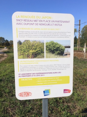 Enfin, trois retours d’expériences ont conclu la journée. L’expérience de bâchage des renouées du Japon menées par SNCF Réseau et l’INRAE a permis des retours sur des facteurs de réussite de cette méthode. Cette plante peut avoir d'importants impacts sur l'infrastructure, et SNCF Réseau et INRAE ont mené des expérimentations de bâchage avec différents modes de fixation, différents dispositifs et modèles de bâches, sur un site en bordure de voie ferrée.