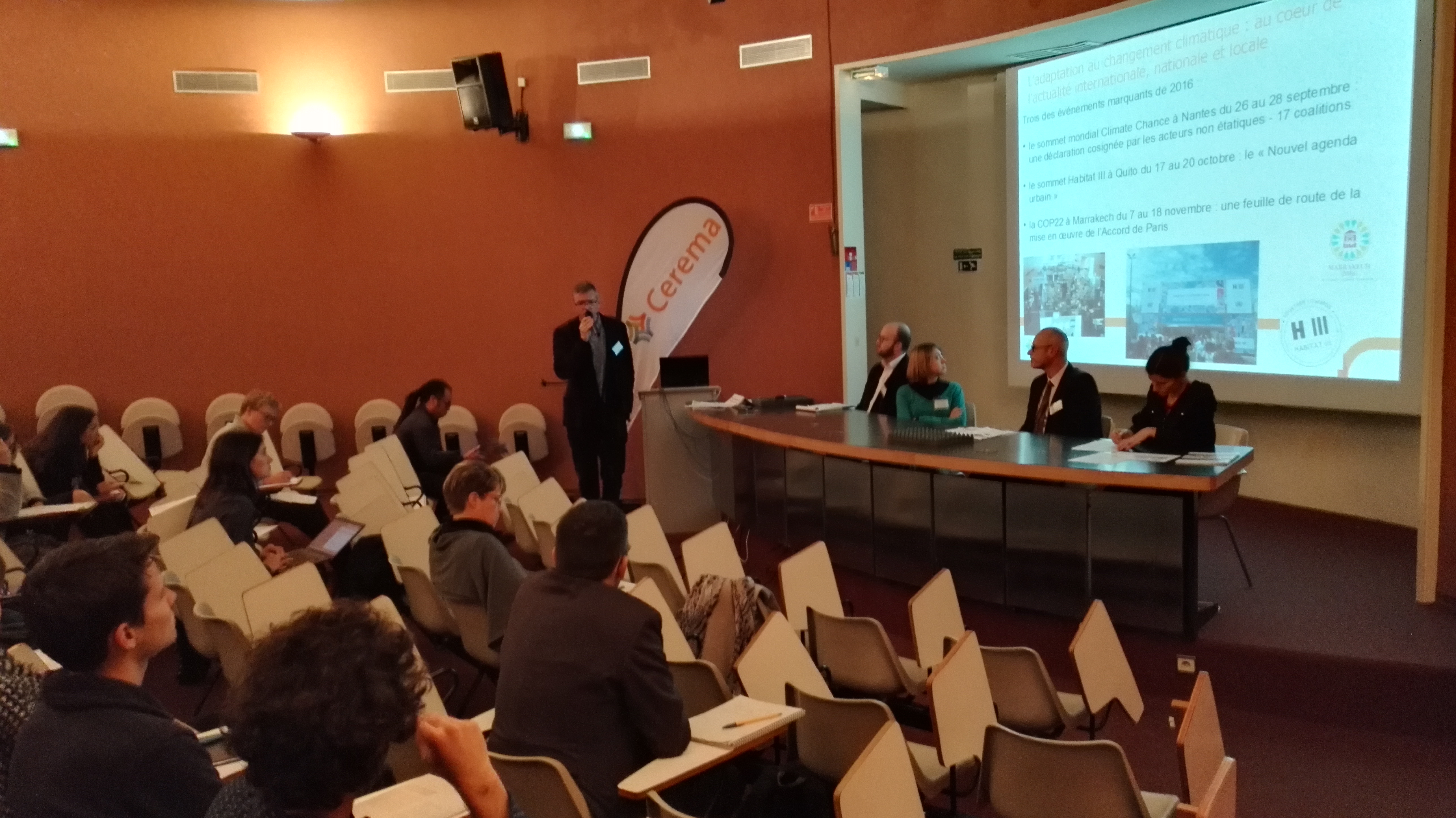 Celle-ci a réuni plus de 60 personnes, représentant notamment des collectivités, des agences d’urbanisme, des services de l’état (DDT, DREAL...), des établissements publics d’expertise et de recherche (IFSTTAR, Météo France, CSTB, IRSTEA, Cerema...).