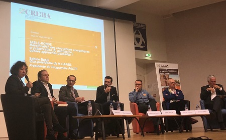 Cette table-ronde a rassemblé Sabine Basili (Vice-présidente de la CAPEB [1] et Présidente du Programme PACTE), Yann Dervyn (Directeur du Collectif Effinergie), Alain Iviglia (de l'entreprise TMH spécialisée dans la rénovation du patrimoine, représentant la FFB), André Pouget (énergéticien-expert national du bureau d’études thermiques Pouget Consultants), Rémi Desalbres (Président de l’Association des architectes du patrimoine) et Michel Simon (Vice-président de la Communauté d’agglomération du Grand Cahors et 1er adjoint au Maire de Cahors en charge du développement durable, de l’urbanisme, de l’habitat et du développement urbain).