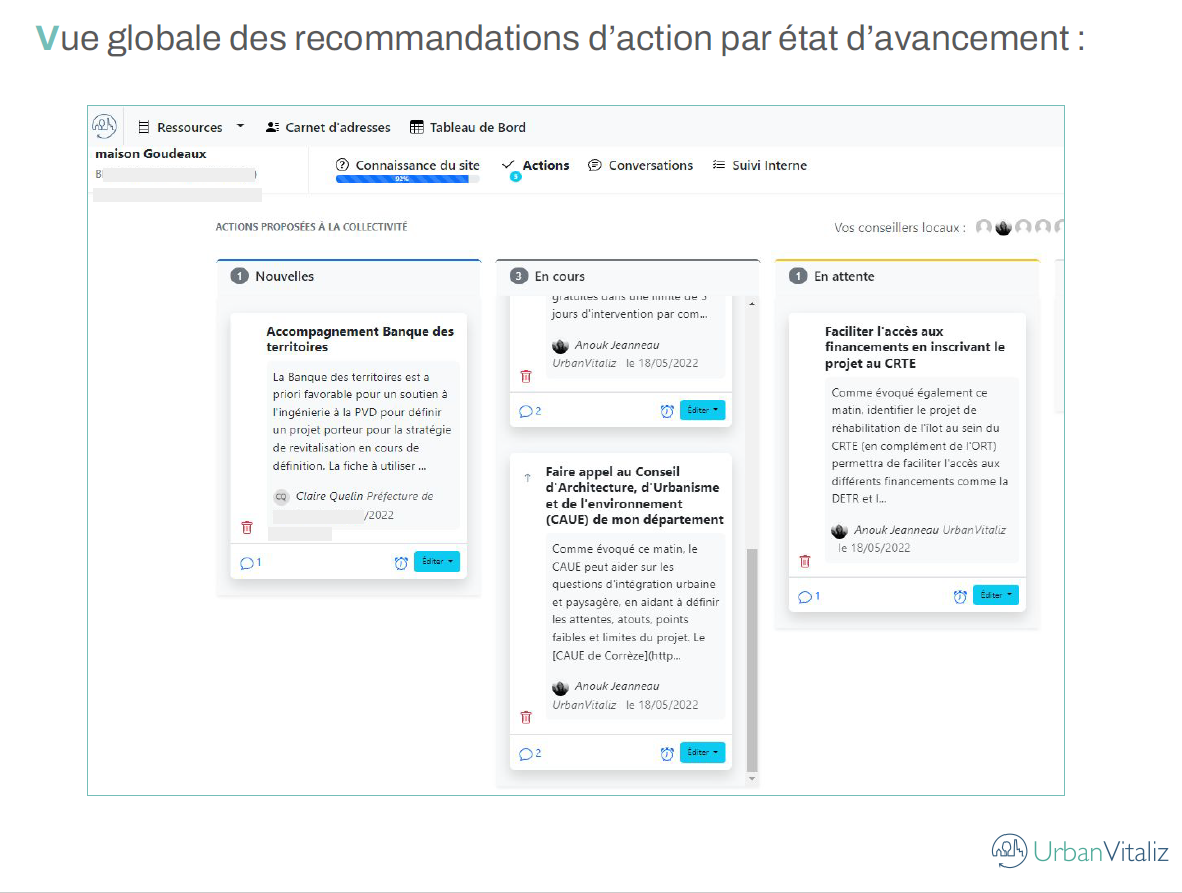 Le site est aussi une mine d’informations puisqu’il répertorie les différentes ressources qui sont collectées au gré des projets. Ces informations peuvent aussi être exploitées par les collectivités sans pour autant s’inscrire dans un parcours de suivi Urbanivitaliz.