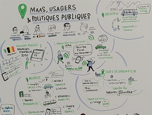 Sigrid Clavieras (UTP) a animé la table-ronde sur la contribution du MaaS aux politiques publiques. Martin Lefrancq a expliqué que pour Bruxelles Mobilité, le projet MaaS se construit en suivant les recommandations du groupe d'experts du Forum International des transports, mais qu'il ne s'agit que d'un outil au service du Plan de Mobilité 2030 ("Good Move"). Bérangère Decros a présenté les sujets d'actualité de Ile-de-France Mobilité, avec l'élargissement du nombres de téléphones compatibles pour la dématérialisation des titres sur smartphone via le NFC et la poursuite du partenariat avec tous les acteurs du covoiturage. Frédérick Petit a exposé la stratégie MaaS du Syndicat Mixte des Mobilités de l'Aire Grenobloise à destination des autosolistes, avec un Pass'Mobilités qui intègre déjà aujourd'hui l'autopartage, le stationnement et le covoiturage, et qui sera complété par le transport collectif au printemps 2023. Christophe Wolf a exposé la stratégie de Mulhouse Alsace Agglomération, qui a débuté par un outil facilitant la vie des usagers des transports, pour ensuite évoluer vers une nouvelle appli en 2022 visant un public plus large et un changement des comportements. Et pour finir, Jean Coldefy (ATEC ITS France) a rappelé que le MaaS peut être un moyen pour rendre plus simple la mobilité et surtout l'intermodalité. Pour répondre aux enjeux de décarbonation, il doit ainsi être conçu à destination des flux entre la périphérie et les centres urbains, et permettre d'aller plus vers une tarification à l'usage, permettant de concilier les intérêts des usagers et les finances publiques.