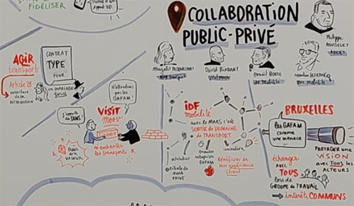 Philippe Rousselet (Adcet) a enfin animé la table-ronde sur la collaboration entre acteurs publics et privés dans les projets de MaaS. Magalie Dujeancourt (AGIR Transport) a expliqué la position difficile de certaines AOM face aux acteurs privés qui demandent de pouvoir distribuer leurs titres de transport sur une plate-forme de MaaS externe, comme le permet la LOM. Pour y répondre, AGIR Transport a élaboré un contrat-type, utilisable en tout ou partie pour formaliser ce lien contractuel entre l'AOM et cet acteur privé. David Riallant (VisitMoov) a illustré la collaboration public-privé par l'outil Selfie Tour, mis en service par VisitMoov sur le territoire parisien, en collaboration avec IDFM. Du côté d'Ile-de-France Mobilités, Benoit Boute a confirmé cet ouverture vers les acteurs privés, pour tirer partie de leur expérience client, tout en restant un acteur public qui propose un socle de données et de services pour garantir la fiabilité. A noter la création toute récente d'une filiale de IDFM de droit privé... Puis, Martin Lefrancq a exposé l'approche de Bruxelles Mobilité, qui consiste à échanger avec tous les acteurs pour établir une vision commune partagée, facilitant ainsi par la suite les collaborations.