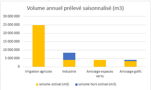 Les volumes des usages substituables ont été évalués avec l’outil STRATEAU (développé par le Cerema), sur les 2 saisons "estivale" et "hors estivale" pour les usages suivants :