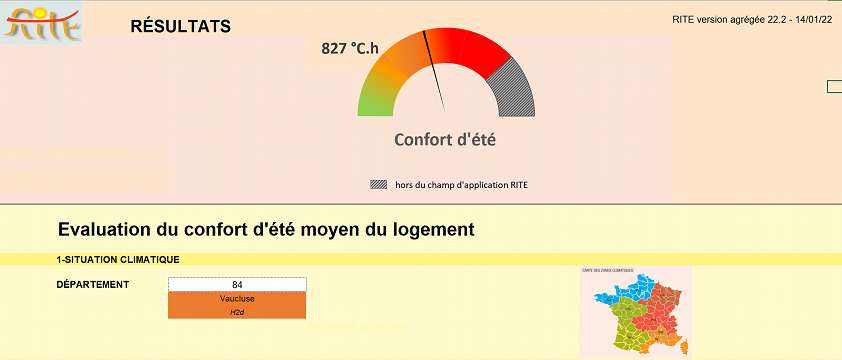 L’outil RITE ne prétends pas se subsister à des calculs détaillés par STD mais il permet de qualifier le niveau d’inconfort thermique avec justesse, que la construction soit neuve ou existante. L’outil utilise le même vecteur de communication que la RE2020, avec comme indicateur le nombre de degré d’heure d’inconfort, les "DH". Cela étant, ils sont calculés différemment, l’outil RITE ayant sa propre méthode d’évaluation de l’inconfort et pour éviter toute confusion, le nombre de degré d’heure d’inconfort dans RITE est nommé « DHRITE ». L’outil RITE n'est cependant pas un outil réglementaire. Le calcul réglementaire est à réaliser dans tous les cas pour justifier du respect de la RE2020.