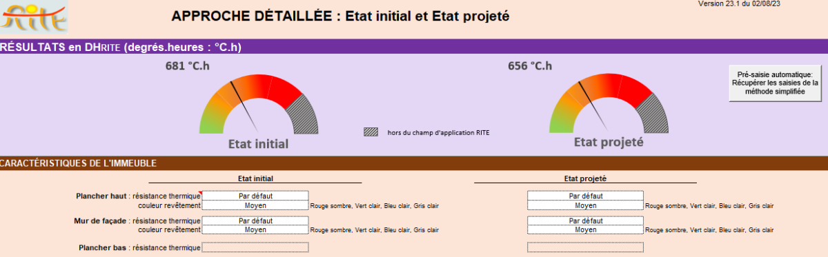 L’outil RITE ne prétends pas se subsister à des calculs détaillés par STD mais il permet de qualifier le niveau d’inconfort thermique avec justesse, que la construction soit neuve ou existante. L’outil utilise le même vecteur de communication que la RE2020, avec comme indicateur le nombre de degré d’heure d’inconfort, les "DH". Cela étant, ils sont calculés différemment, l’outil RITE ayant sa propre méthode d’évaluation de l’inconfort et pour éviter toute confusion, le nombre de degré d’heure d’inconfort dans RITE est nommé « DHRITE ». L’outil RITE n'est cependant pas un outil réglementaire. Le calcul réglementaire est à réaliser dans tous les cas pour justifier du respect de la RE2020.
