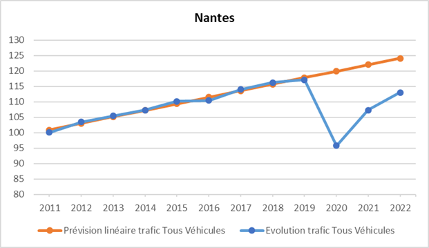 | Nantes Métropole | 2015 (EDGT) | 4,20 | 2022 (enquêtes locales) | 3,4 |