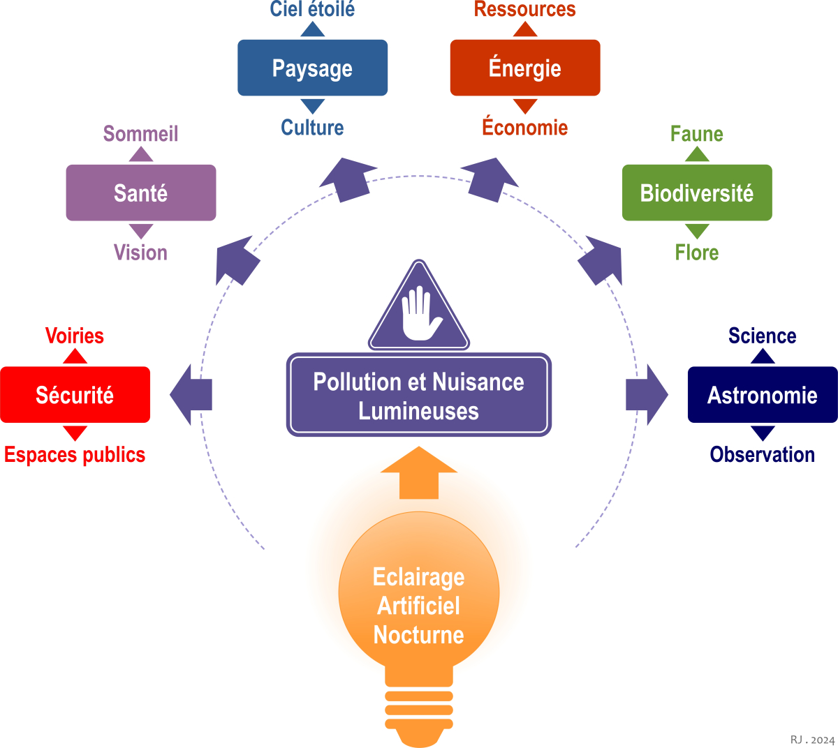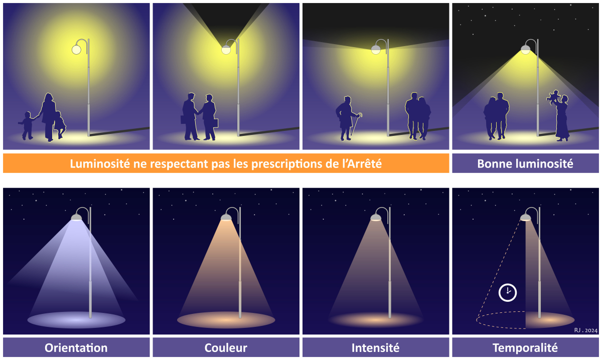 - Les enjeux en lien avec l’éclairage public : l'énergie, l'environnement (nuisances lumineuses et impact sur la biodiversité), la sécurité des déplacements et la continuité de la vie sociale en période nocturne.