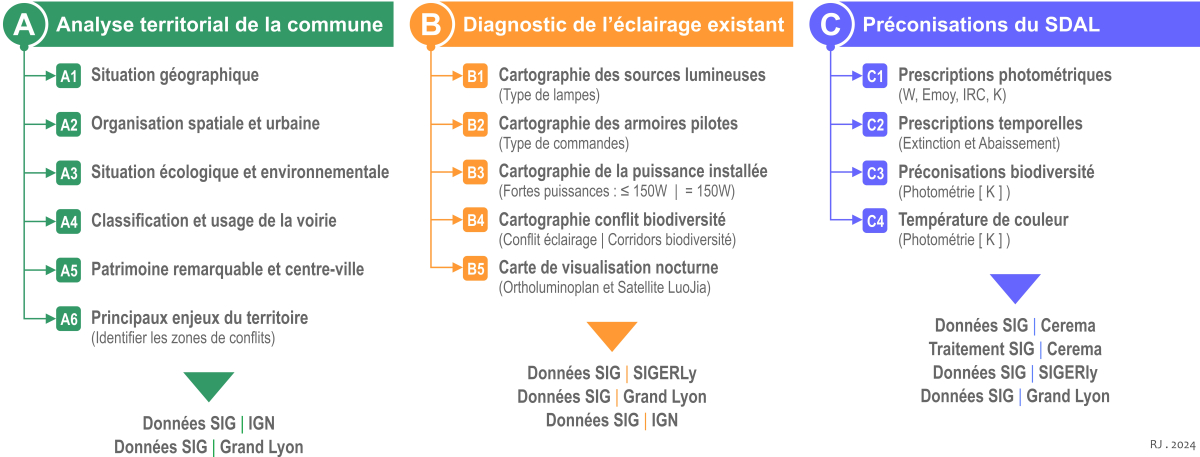 Pour répondre à cet objectif, le SIGERLy a souhaité s’engager avec le Cerema dans le cadre d'une convention de coopération Public | Public signée en décembre 2022 dans l’optique d'élaborer une méthode de travail commune et de réaliser plusieurs SDAL en 2023. Lauréat de l'appel à projet Lum‘ACTE (Programme ACTEÉ) en début d'année 2023, le partenariat SIGERLy | Cerema a obtenu des financements pour réaliser plusieurs SDAL.