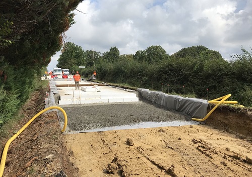 Une des solutions de confortement testées par l'ORSS Catégorie 1 : agir sur la structure de chaussée afin de la renforcer pour reprendre la remontée de fissures ;