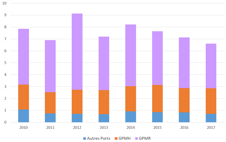 Que ce soit pour une finalité d’entretien ou pour une campagne d’approfondissement, les opérations de dragages menées par les ports concernent environ 7 millions de m3 par an (Figure 2). Sur ce volume, 7% font l’objet d’une gestion à terre.