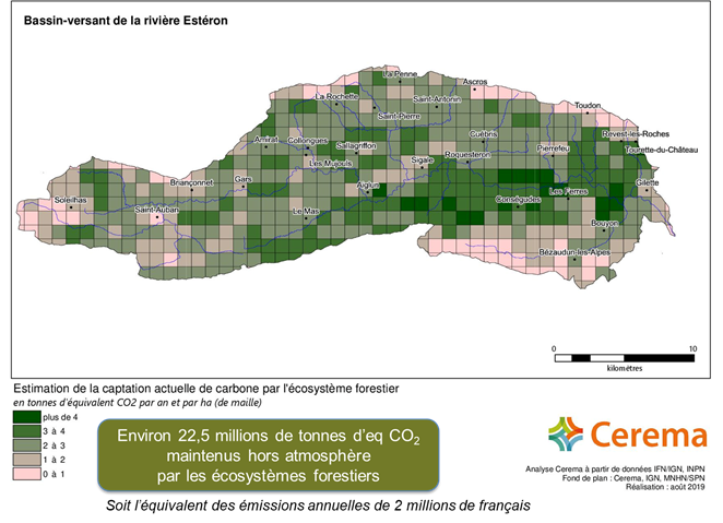 Selon les bassins versants étudiés les 4 services écosystémiques sélectionnés par les acteurs locaux différent légèrement mais la disponibilité en eau potable avec peu ou pas de traitement, le bois énergie et la séquestration du Carbone CO2 fournies par la forêt et le bocage breton (particularité du Léguer), les activités de plein air (comprenant chasse, pêche, randonnée, kayak ...) et la notion d'attachement des habitants à leur vallée ( Léguer) ou le sentiment de quiétude des lieux (Estéron) sont des notions fortes qui ont été identifiées par les comités de pilotage locaux.