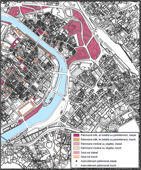 - Les périmètres de protection coexistant : périmètre réglementaire de 500 m (et son adaptation en PPM), périmètres ABF/PDA, secteurs sauvegardés et leur PSMV.