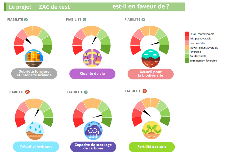 L’outil d’analyse attribue un score qualitatif pour chaque finalité de "pas du tout favorable" à "extrêmement favorable", permettant une vision globale des impacts potentiels.