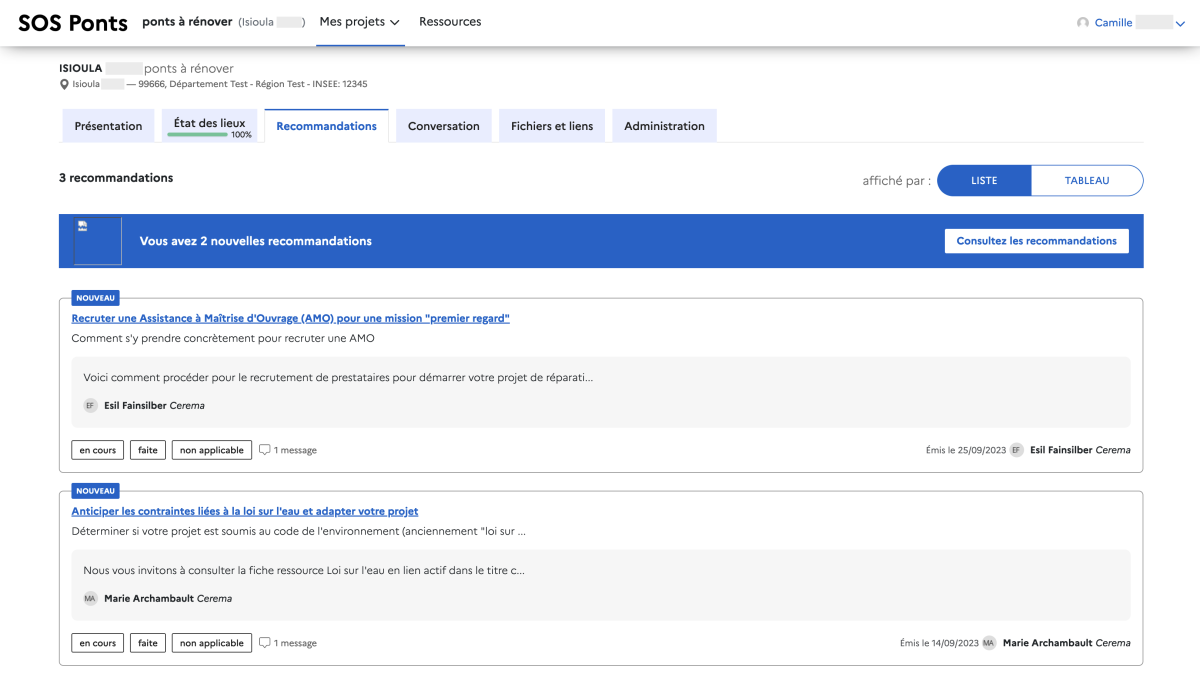 Nous voulions proposer un outil simple et accessible pour toutes les communes qui se posent des questions après avoir reçu le carnet de santé de leurs ponts et de leurs murs. Nous avons échangé avec l’équipe d’UrbanVitaliz qui travaille sur le sujet des friches et propose un service pour des communes qui ont des besoins similaires. Urbanvitaliz nous a mis à disposition leur outil numérique, que nous avons adapté au sujet des ponts et des murs. Nous l’avons testé auprès des communes et continuons à collecter les retours des collectivités pour améliorer le service.