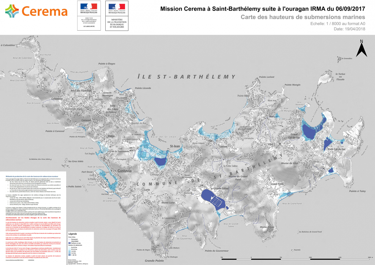 La carte des hauteurs de submersions marines sert désormais de base aux réflexions sur la reconstruction de Saint-Barthélémy et en particulier à l’élaboration d’un Plan de Prévention des Risques Naturels prévisibles (PPRN) prescrite par délibération du Conseil Territorial de la Collectivité de Saint-Barthélémy du 20 novembre 2017.