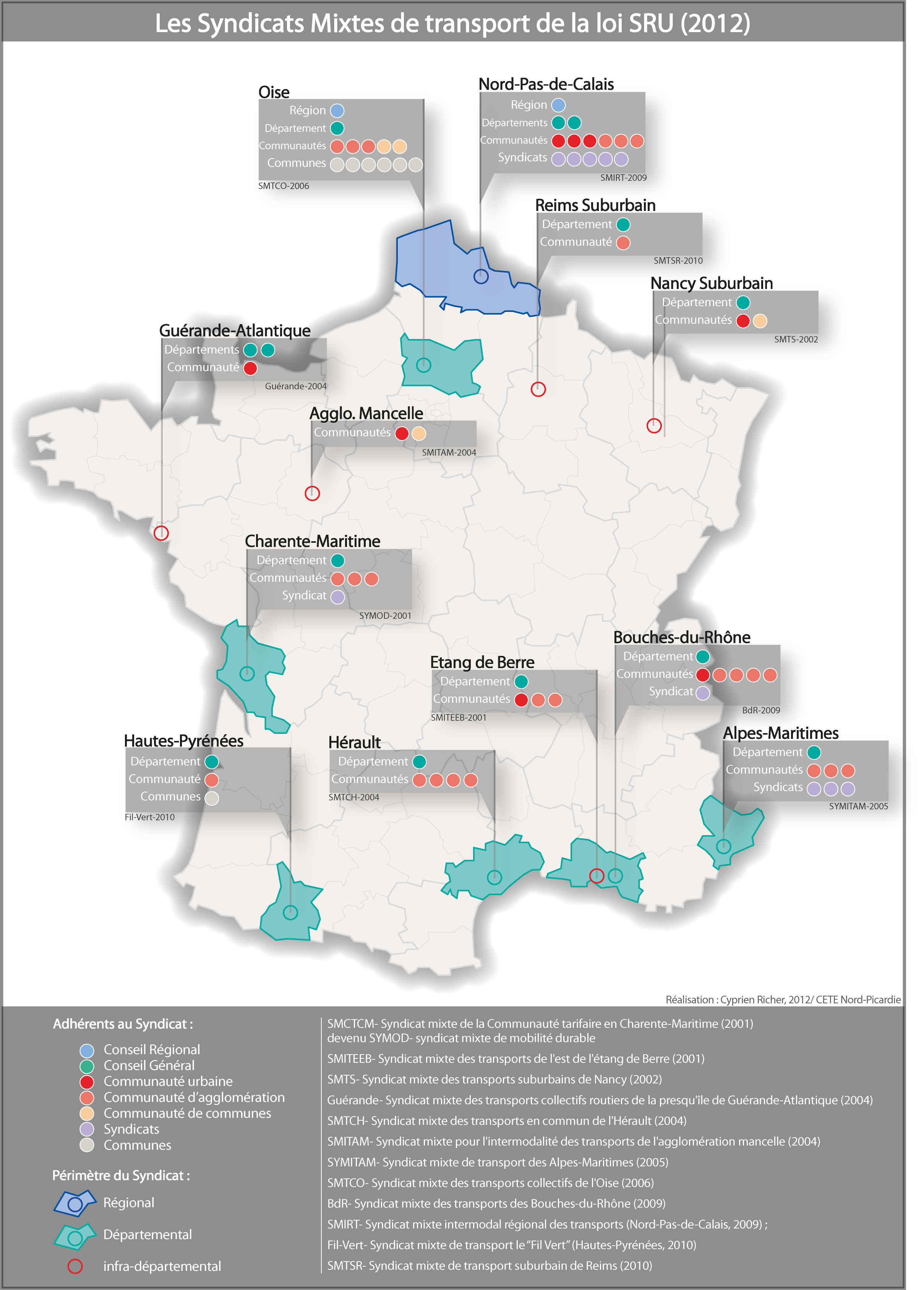 Fin 2012, on comptait 12 syndicats mixtes SRU en France métropolitaine.