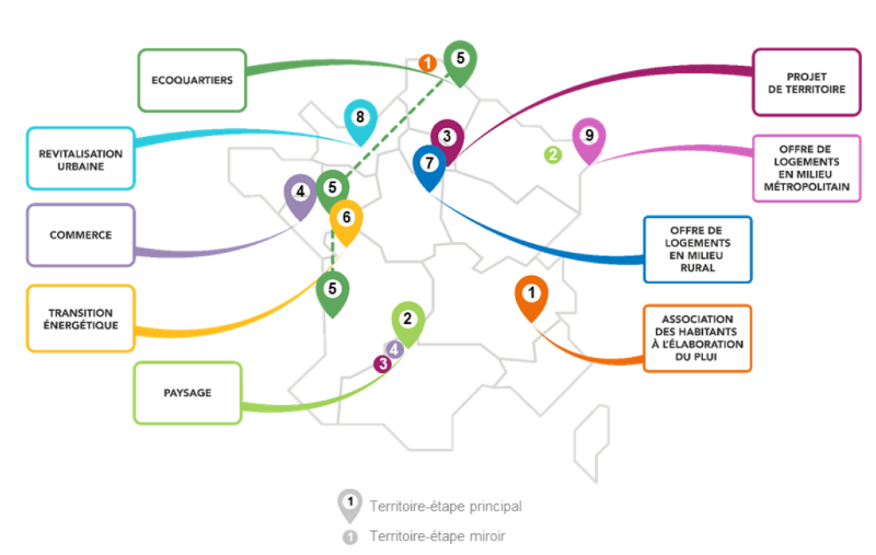 Le Tour de France des PLUi s’inscrit dans cette perspective, à travers un processus de sensibilisation par l’exemple. Il a pour objectif de capitaliser l’expérience d’EPCI ayant un PLUi réalisé ou en cours d’élaboration, afin de repérer les points de vigilance et de trouver des axes d’amélioration et des facteurs clés de réussite qui serviront aux EPCI se lançant dans une telle démarche.