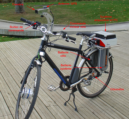 Le Vél’audit, développé par le Centre d’Etudes et de Conception des Prototypes (CECP) d’Angers qui travaillait déjà sur les équipements de diagnostic des routes, répond à ce besoin. Il s’agit d’un vélo électrique équipé d’outils qui permettent de relever de nombreux paramètres :