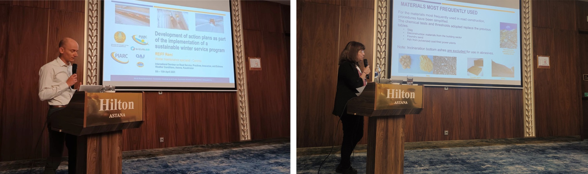Cette table ronde modérée par le Cerema, a fait intervenir Peter Nutz, président du comité technique TC 3.2 et responsable de la planification et de l’entretien hivernal à Vienne (Autriche), Anna Arvidsson, Chercheuse, VTI, membre de TC 3.2, Suède et Zhumamuratov Manarbek, représentant de KazdorNII (Kazakhstan)..