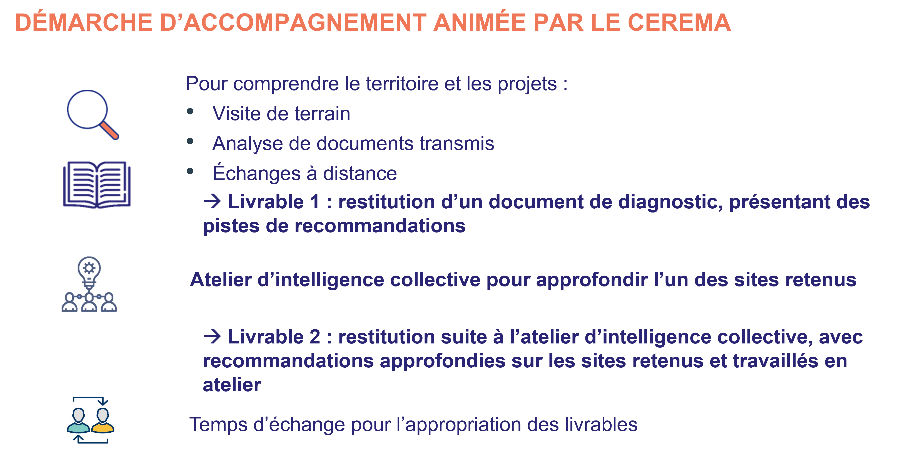 Validé par les communes, l’accompagnement proposé par le Cerema s’est déroulé en trois étapes :