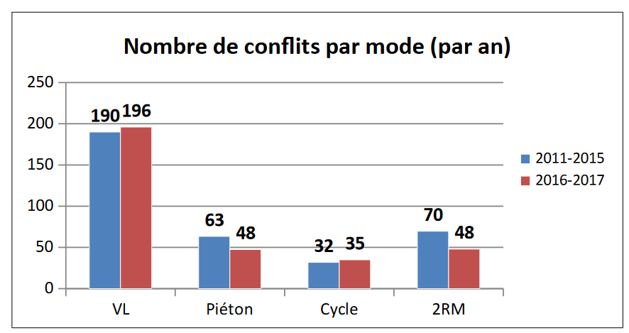 Même si cette tendance ne peut pas être uniquement imputée à l’abaissement de la limite de vitesse générale à 30 km/h, compte tenu des différentes autres mesures mises en œuvre à l’échelle métropolitaine, cet abaissement de vitesse à 30 km/h y a contribué.