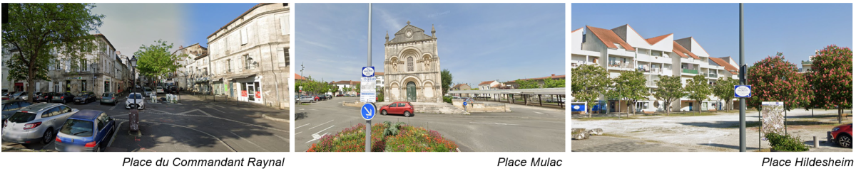 - La place Mulac : une grande place en ville basse, à usage principal de parking mais soulevant de nombreux autres enjeux (proximité écoles et commerces, square, marché hebdomadaire),