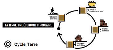 L'entreprise Cycle Terre située à Sevran (93) transforme la terre crue des déblais de chantiers d'Ile de France en matériaux de construction (blocs de terre compressés, enduits, panneaux extrudés de type BA13).