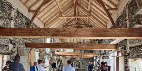 Au cours d'une journée de visites architecturales en Vallée d’Ossau organisée par le Pavillon de l’Architecture et Fibois Nouvelle-Aquitaine, un architecte vous partage sa découverte de l’entreprise Ecoprefa et du chantier du Pôle Enfance Jeunesse à Arudy, avec une structure ossature bois et paille, préfabriquée et mise en place par l’entreprise locale.