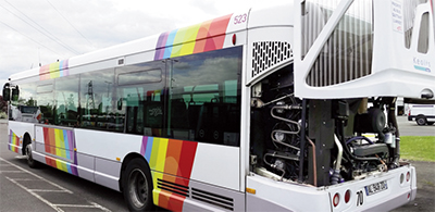 Mise en œuvre du système e-Fan visible à l’arrière d’un bus du