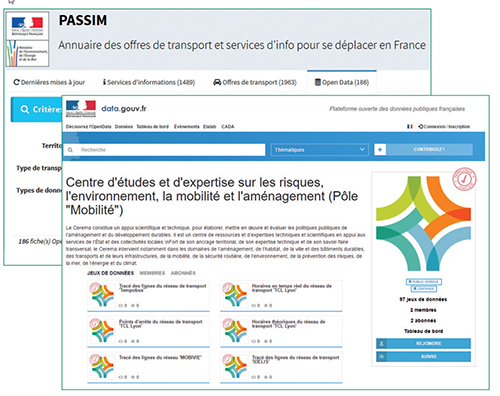 L’observatoire permet une recherche par type de transport (covoiturage, transport collectif urbain…), par type de données (arrêts, horaires…) ou encore par territoire (www.passim.info/#opendata). Il donne également des indicateurs statistiques sur le pourcentage de données ouvertes, par catégories (www.passim.info/opendata/stats) : on voit ainsi qu’il existe plus de 70 services de transport collectif qui diffusent leurs horaires théoriques en Open Data, ainsi que 80 % des systèmes de vélo en libre-service (localisation et la disponibilité des stations).