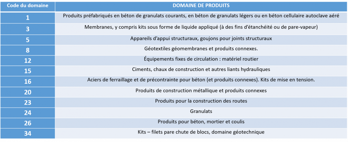 Les domaines de désignation du Cerema pour les produits de construction